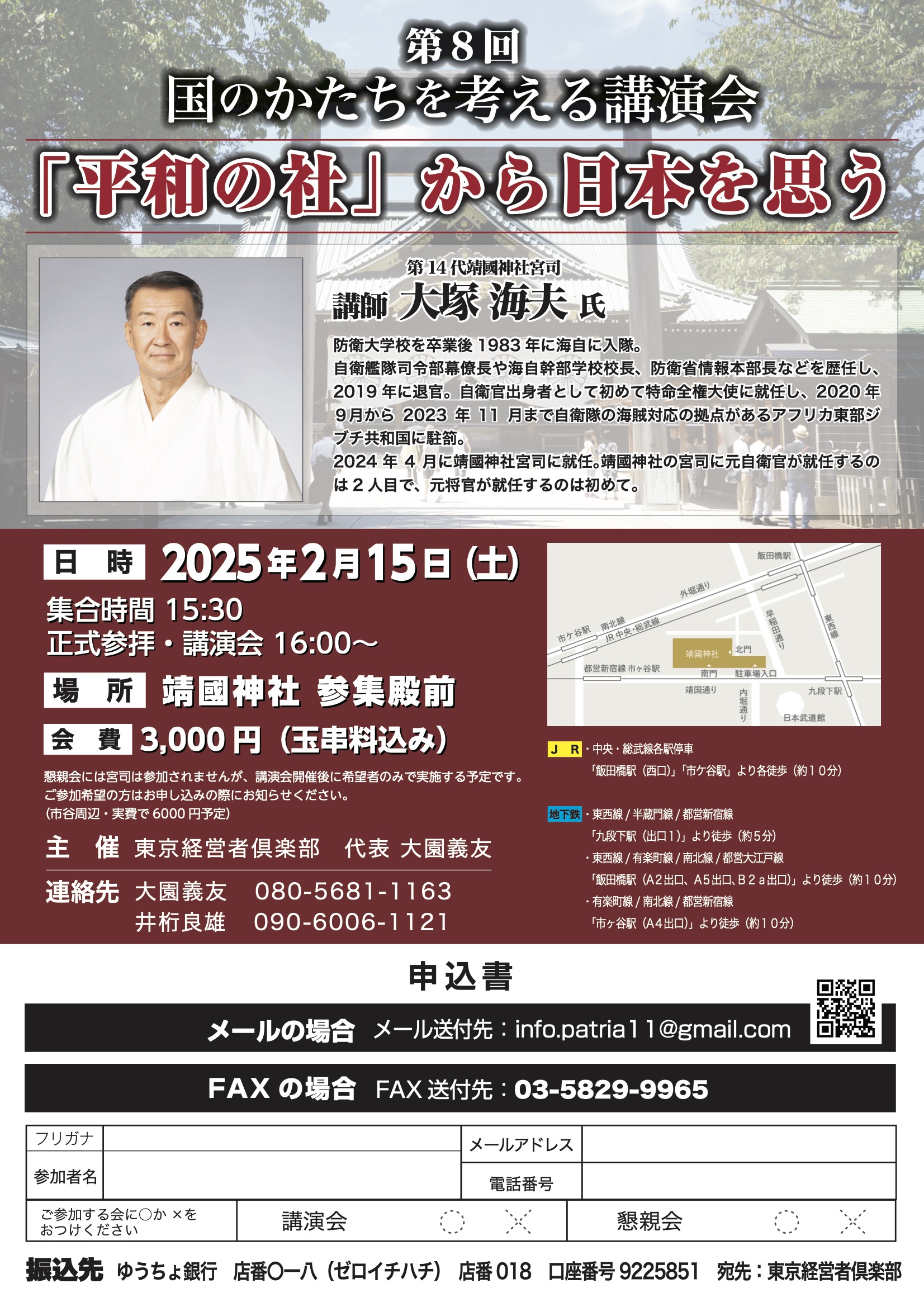 講師:第14代靖國神社宮司 大塚 海夫 氏