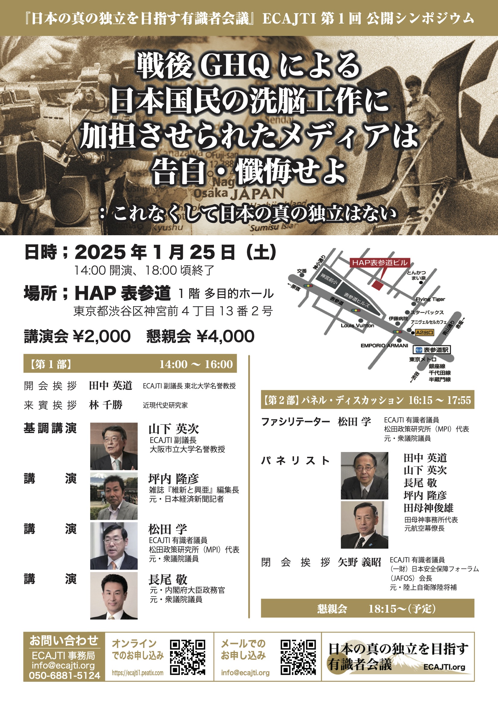 25年1月25日『日本の真の独立を目指す有識者会議』ECAJTI 第1回 公開シンポジウム